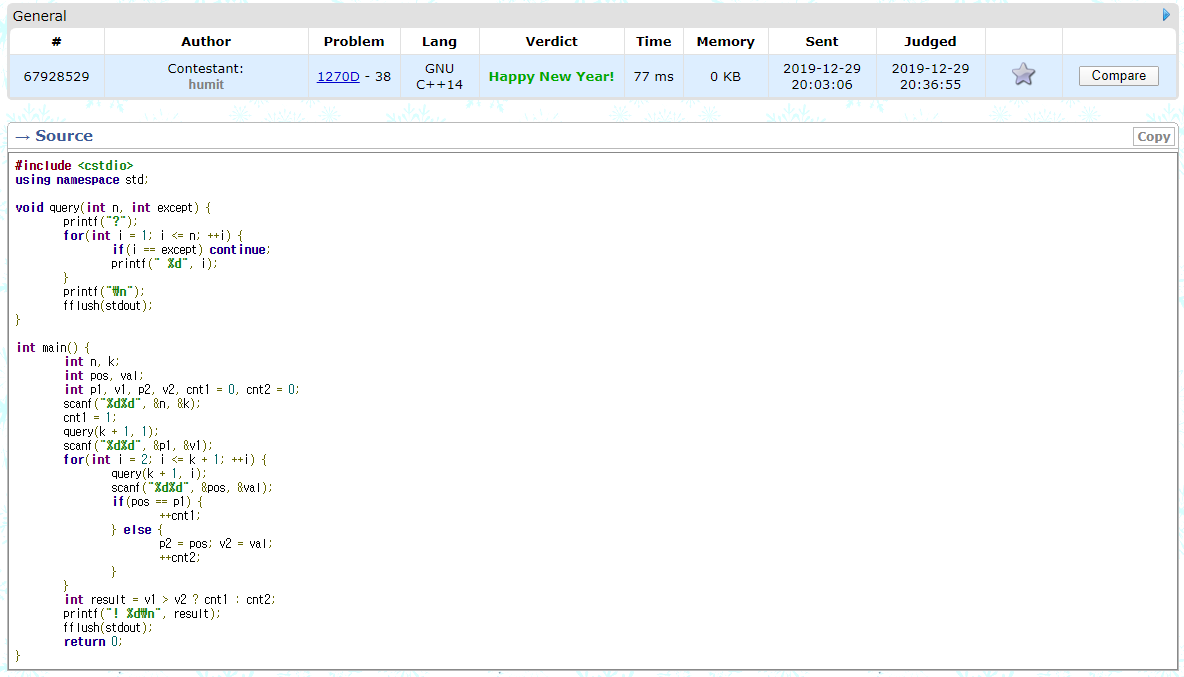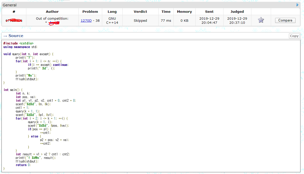 제출한 시간을 비교해보니 약 1분 정도 차이가 있었다. 내가 ideone에서 작성한 코드를 검색엔진에서 크롤링해서 다른 사람이 그 코드를 검색해 찾아서 사용했다라는 것 빼곤 설명할 수 있는 방법이 없는 것 같다.